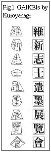 漢字はストロークを複雑であるため、字形の他の特徴がアウトラインに影響します。GAIKEIは、中国で中世から、手で書く学習における重要なポイントとして使用されてきました。日本の1920年代のKuroyanagiの例は図1で示されます。