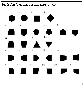 この実験のための26のGAIKEIが作成されました。 (図2) 次に、この実験におけるGAIKEIを認識する方法には、客観性と不変性が必要です。このために、GAIKEIは内藤によって定義された方法によって、コンピューターで処理されます。 このプログラムは図3の手続きによってGAIKEIを選びます。