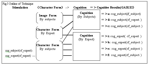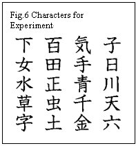 この実験におけるGAIKEI方法は、図4に示した字形やイメージをアウトライン(GAIKEI)に変換し、そのアウトラインが比較されるというものです。この実験の中で扱われたデータは、図5で示されます。 各アウトライン(GAIKEI)の比較によって、各能力が比較できるでしょう。