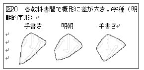 各教科書会社別に形状ごとの分類を示したものが、図19である。このように手書き文字においては、似た分布を示すことが読みとれる。