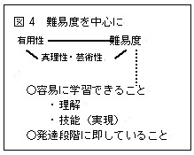 このように考えると、その学習内容が歴史的に洗練されたものであり、多くの人々による直感から真であるとされ、かつ合理性を説明できるものを、より真理性・芸術性が高いとすることができよう。本稿では、この合理性を、基礎基本を考える上での一つの視座とする。他の学習内容にくらべある学習内容により合理性が認められる場合、より基礎基本であると考える。