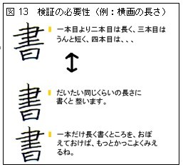 たとえば、「複数の横画の長さ」という課題があったとき、学習方法は、