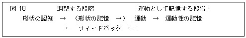 一方、大脳生理学の研究は進んでおり、一般向け概説書においても、書字運動が小脳における運動性記憶の可能性のあることについて述べられている。筆者はこれについての専門的知識を持たないが、文字の言語としての意味・音およびその運用能力を別にして、図 18のような能力の分離を仮説としてあげる。