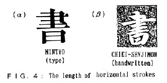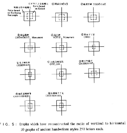 E necessario considerare il modello delle lettere presentato agli studenti.Come abbiamo gia scritto,i ragazzi alle scuole elementari imparano il modello Kaisho, Vergato in un classico schema cinese di forma quadrata. Inoltre si deve tener conto del fatto che i carratteri tipografici influenzano la scrittura dei ragazzi. Si veda,ad esempio,il modello di carettere SHO(scrittura) all fig.3 e lo si confronti con la fig.3a nella quale abbiamo riprodotto il carettere adottato dal 70% dei ragazzi. In una indagine si e constatato che l'80% degli studenti ha preferito la fig.b rispetto alla fig.a ritenendola esteticamente piu valida.