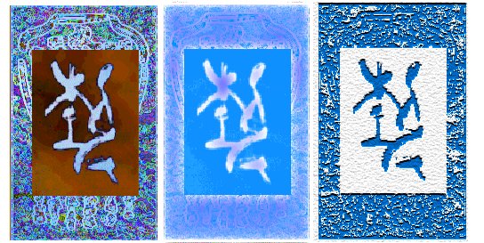 最近のソフトウェアでは、図のように画質そのものを変化させることができるものも少なくありません。真ん中は、後ろから光を当てたようなイメージ、右は和紙を切り抜いたようなイメージにしてみました。