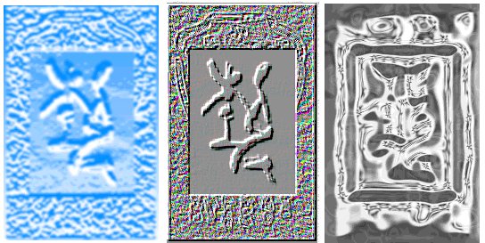 最後は、立体化です。図は左から、浮き彫り、押し出し、クロムという処理をしています。モノクロでご覧になる皆さんにはうまく表現できているかどうか心配ですが、ちょっと面白いのではないでしょうか。